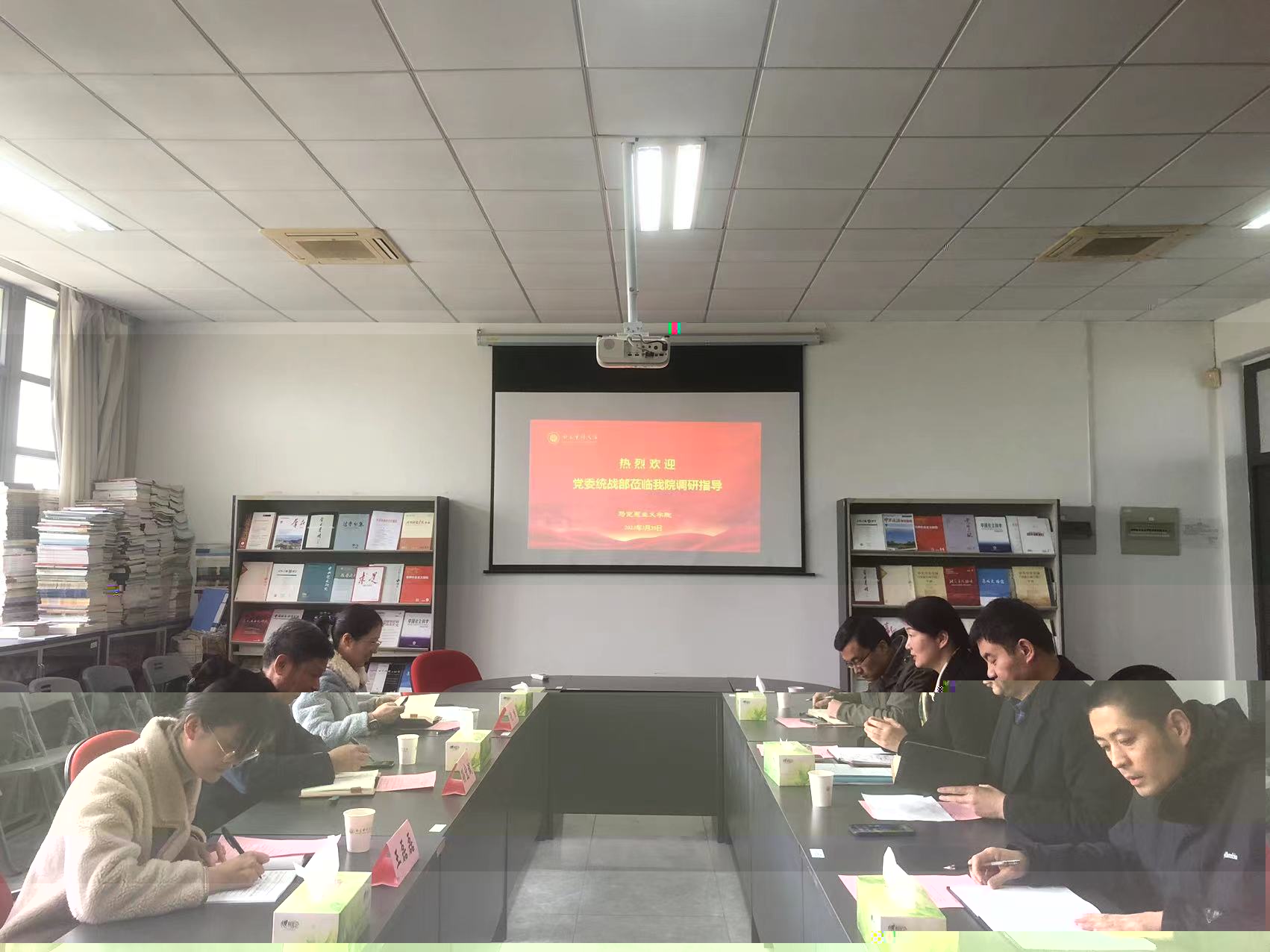 3月30日上午,黨委常委、統戰部部長、機關黨委書記孫宏斌、黨委統戰部副部長倪桓、黨委統戰部辦公室副主任王磊磊來學院調研指導。馬院班子全體成員和黨政辦、教務辦等行政人員參加。會議由黨總支書記趙歡春主持。