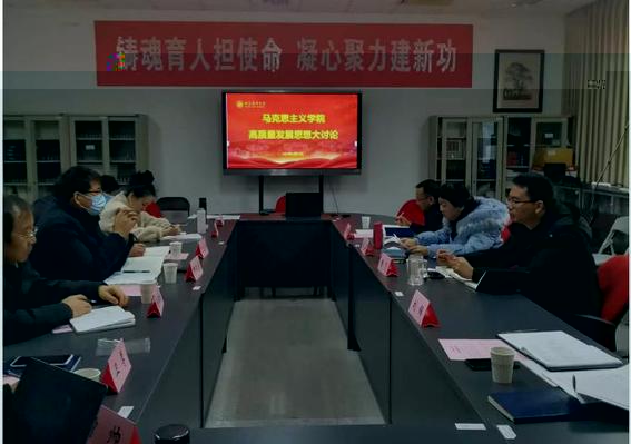 實踐發展永無止境,解放思想永無止境。為積極響應學校高質量發展思想大讨論會議精神,高質量建設新時代伟德官网地址多少,1月19日上午,學院在文濟樓307開展高質量發展思想大讨論活動。學院全體班子成員及各教研室主任參加大讨論。讨論活動由院長金晶主持。