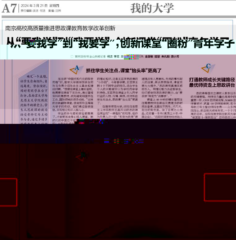 為充分響應和學習貫徹習近平總書記“3·18”重要講話精神,切實落實立德樹人根本任務,南京日報近日報道了南京部分高校高質量推進思政課教育教學改革創新舉措的優秀案例,我校伟德官网地址多少《中國紅色審計史》課程建設情況入選其中。