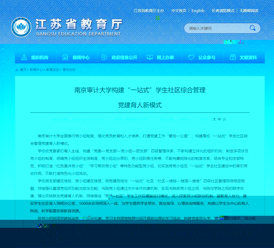 為強化黨員教育和探索人才培養新模式,我院和潤園書院聯合撰寫的《伟德官网地址多少構建“一站式”學生社區綜合管理黨建育人新模式》一文被省教育廳網站全文采用。