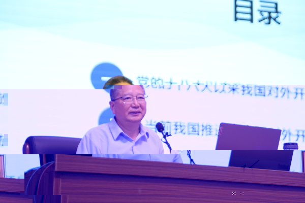 10 月 16 日下午,我校 2024-2025 學年秋學期的“形勢與政策”課第二講在沁園學術報告廳舉行。校黨委副書記俞安平教授為同學們帶來題為《紮實推進高水平對外開放 開啟新時代開放新征程》的專題報告。校黨委常委、黨委宣傳部部長強飙主持報告會。