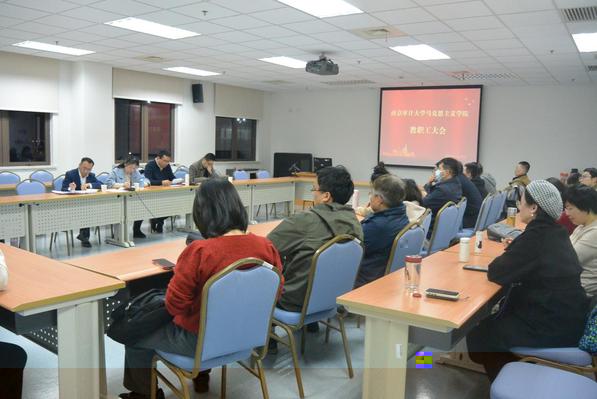 院長金晶傳達了本科教育教學審核評估專家意見交流會相關情況,她表示專家組對學院教學工作給予了肯定,馬院全體教師要再接再厲,深刻領會專家反饋意見,保持認真嚴謹的優良作風,推動馬院高質量内涵式發展。