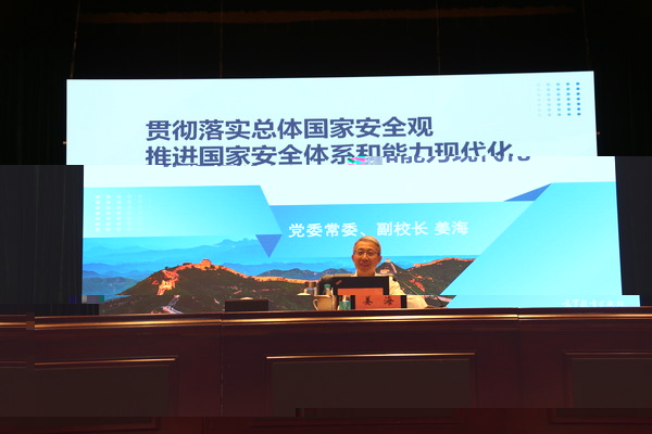 姜海主講《貫徹落實總體國家安全觀》專題,他系統解讀了總體國家安全觀的豐富内涵,全面闡述了新時代國家安全面臨的複雜形勢與嚴峻挑戰,深入分析了推進國家安全體系和能力現代化的實踐路徑,強調總體國家安全觀是新時代維護國家安全與發展的行動指南,他号召同學們增強國家安全意識,以實際行動守護國家安全防線。