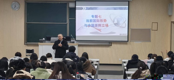 2025年春學期,黨委書記董必榮教授講授形勢與政策課專題《走好中國式現代化之路》,結合審計案例闡釋國家治理現代化;校長陸華良主講《走好新時代科技自立自強路》,聚焦智能審計與大數據審計前沿;副書記陳中建以《當前我國社會思潮新趨勢及其影響——鑄牢中華民族共同體意識》為題,闡述鑄牢中華民族共同體意識的重要背景和意義;裴育教授解讀《當前中國政府的主要任務财政政策》,分析财政政策穩增長路徑;副校長姜海圍繞《貫徹落實總體國家安全觀》,探讨糧食安全與數據安全;副校長周方舒開設《思想道德與法治》,強調審計職業道德與政治素養并重。趙立法、盧亞娟、李乾文、任志成、姜海、陳冬華等校領導立足學科專長,系統講授《習近平新時代中國特色社會主義思想概論》,從法學、經濟學等多維度解析理論内涵,推動黨的創新理論入腦入心。